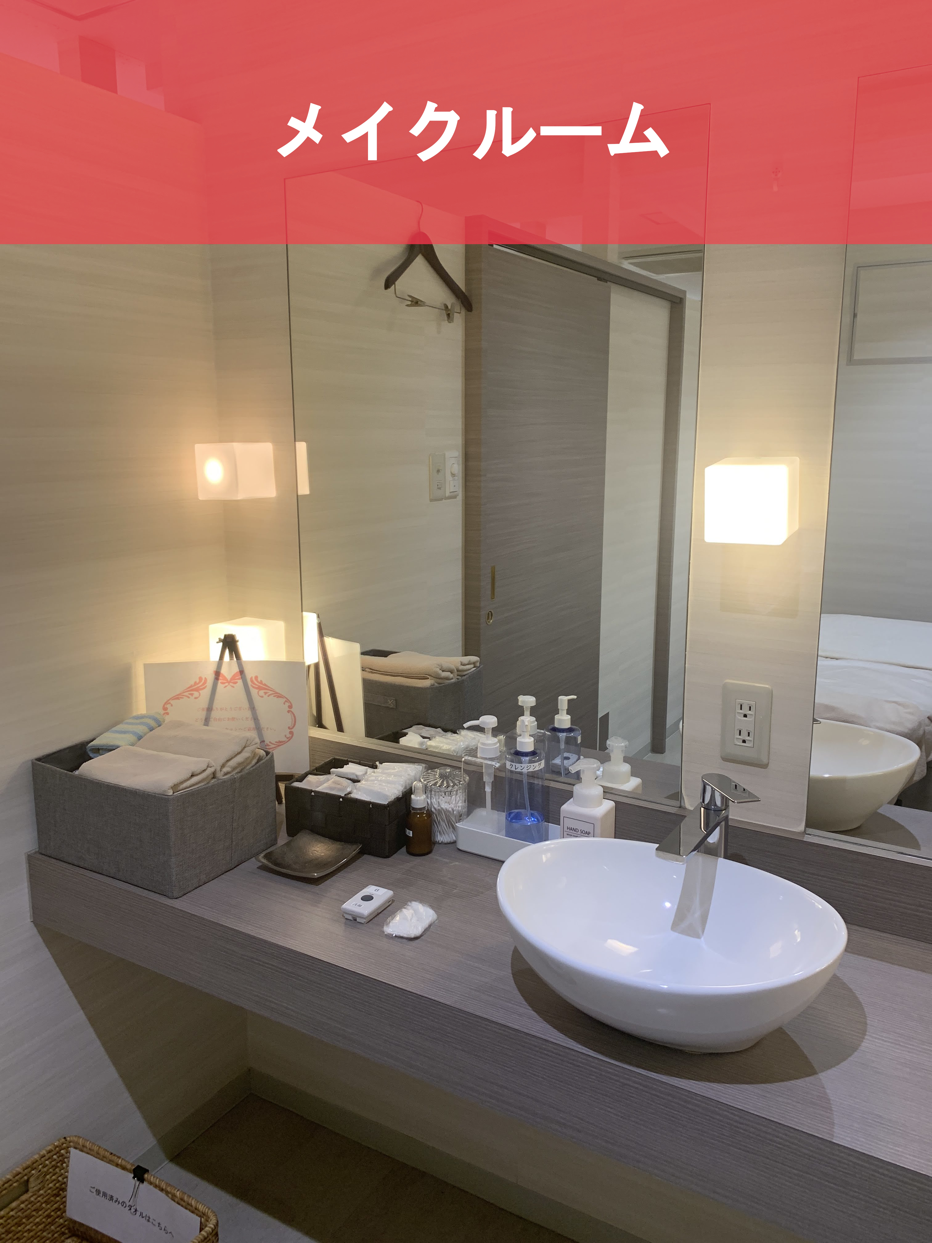ホテルのような空間に癒されます。こちらでメイク落としをしていきます。