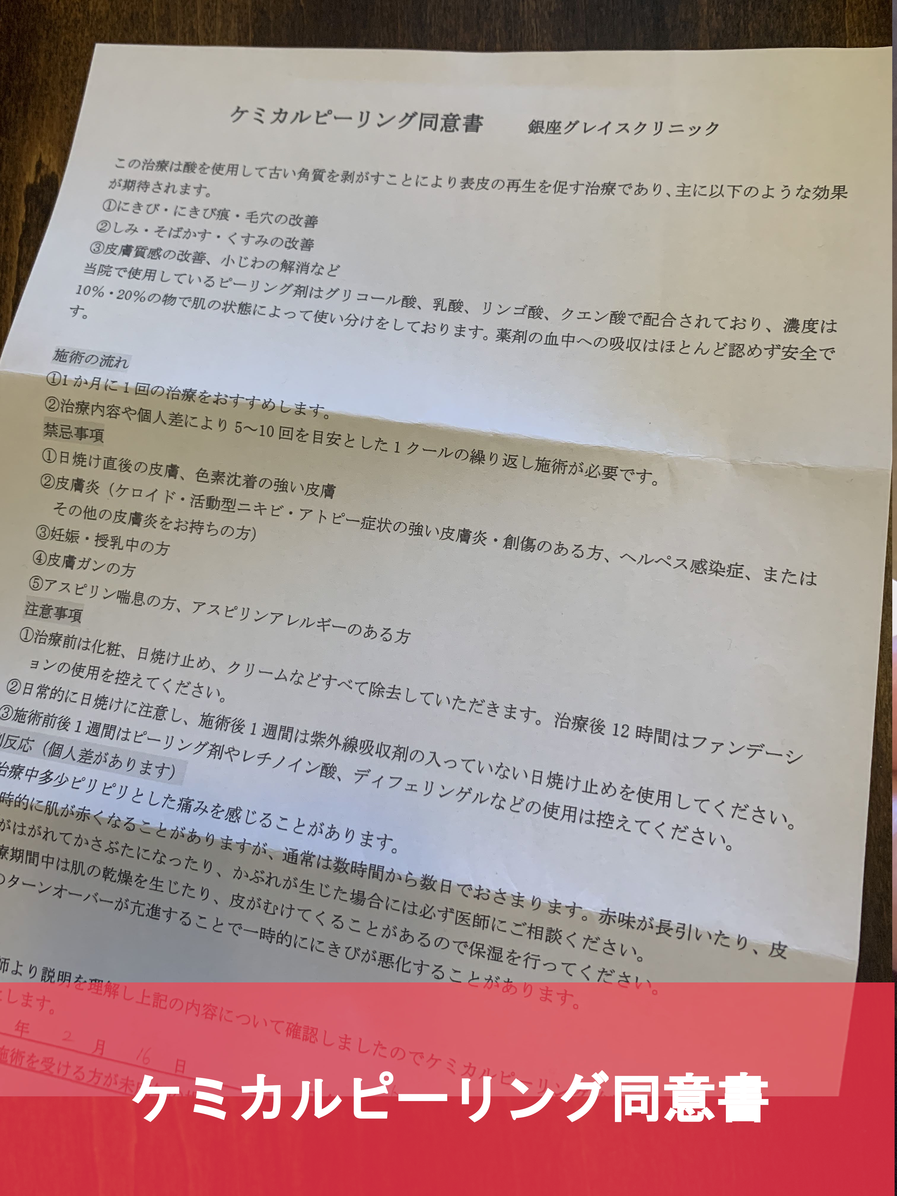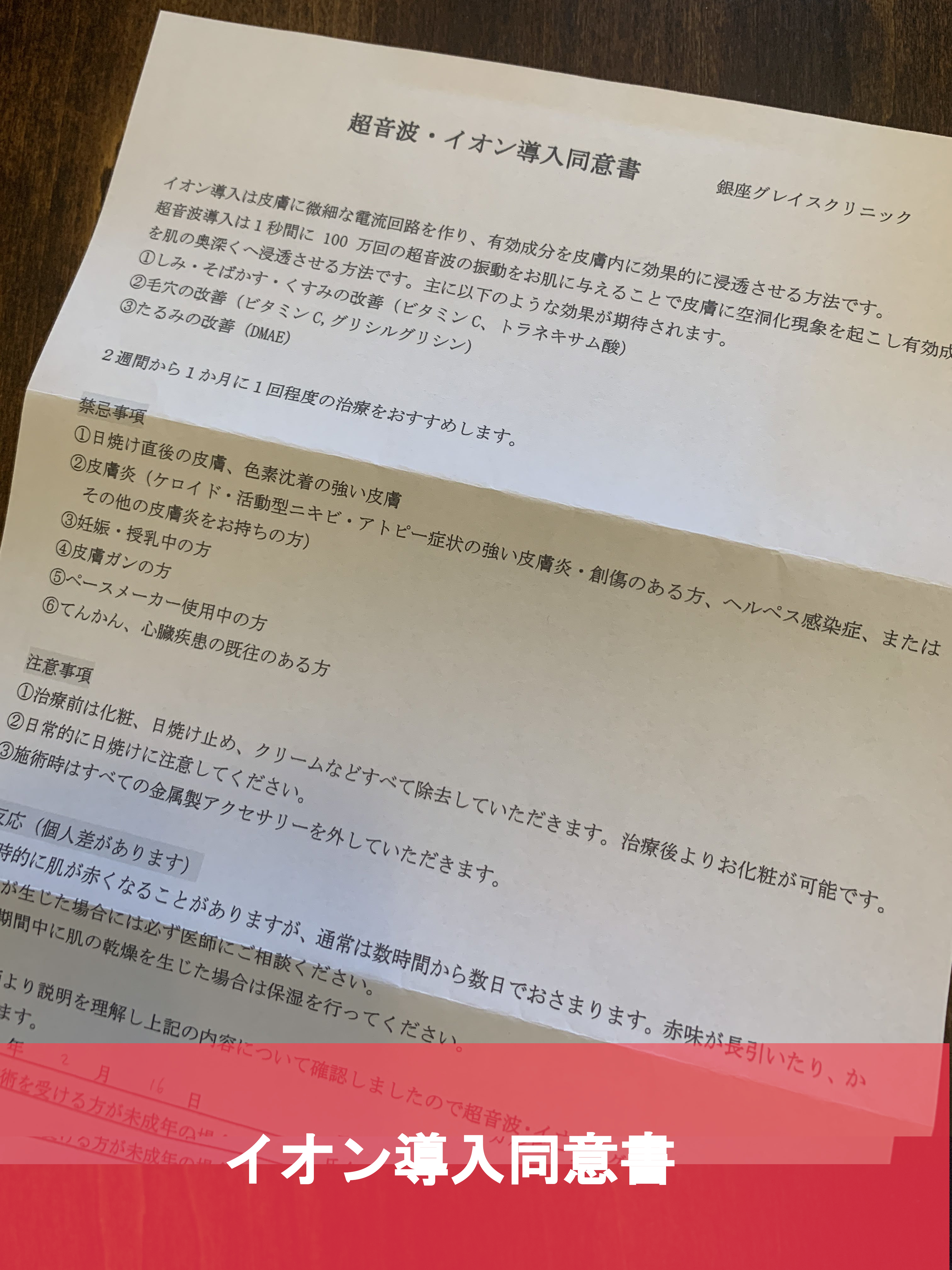 ケミカルピーリングの同意書と、イオン導入の同意書です。